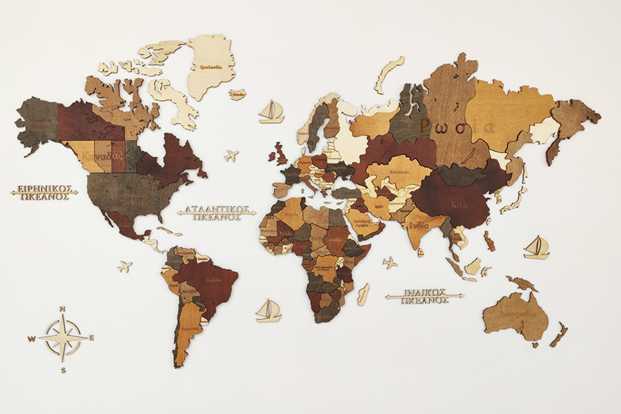 Ξύλινος τρισδιάστατος παγκόσμιος χάρτης τοίχου - (190 x 110) / Με ονόματα