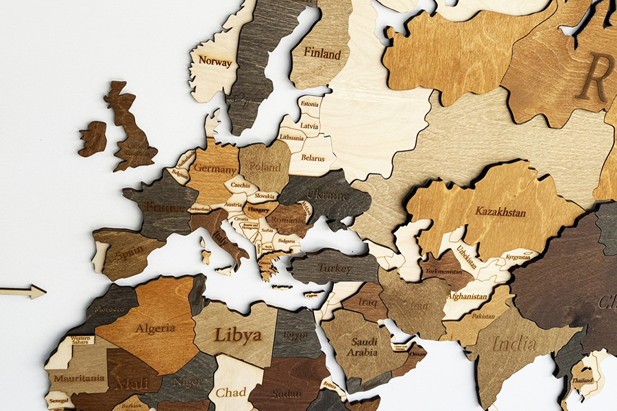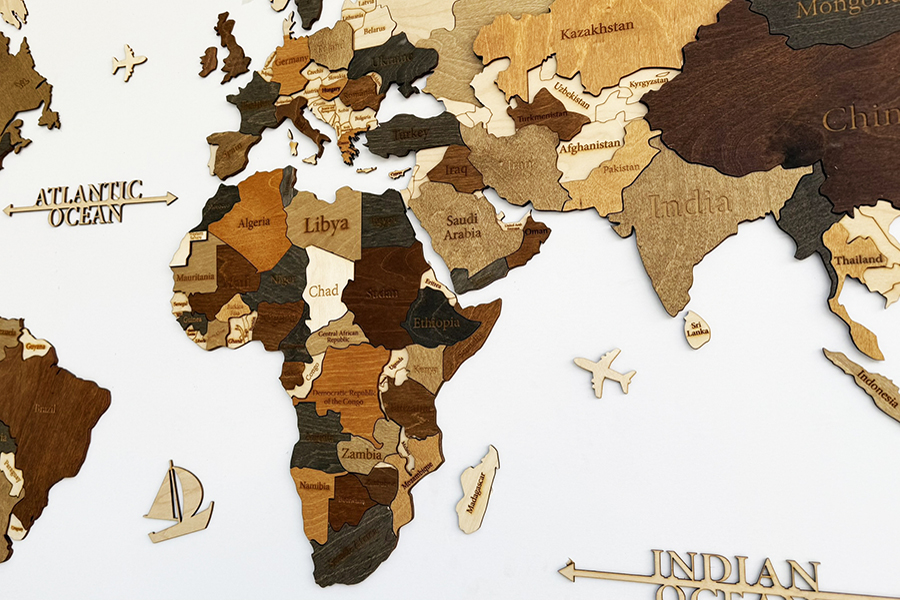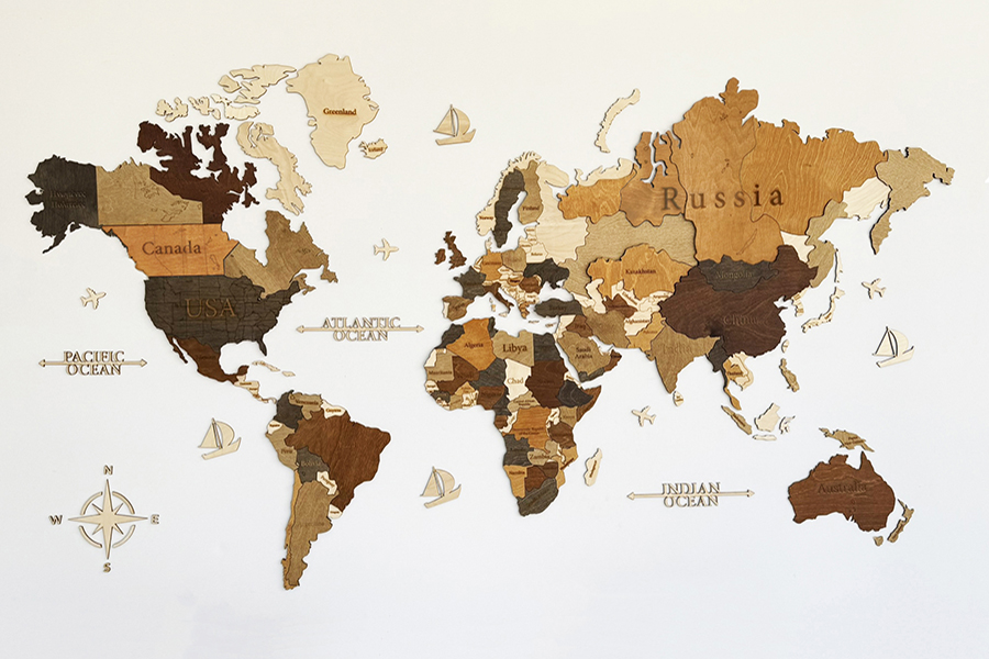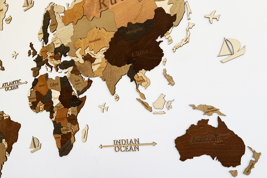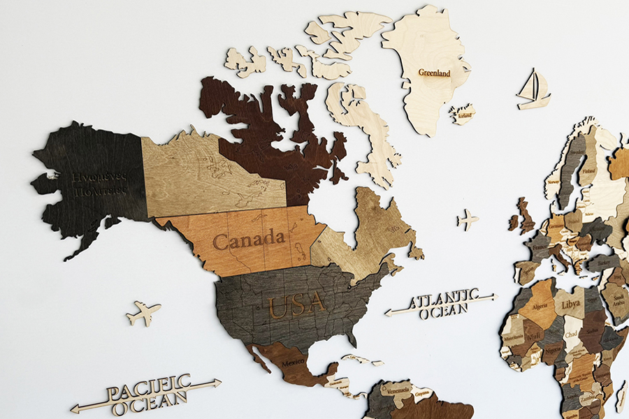 ξύλινος χάρτηςμε ονόματα χωρώναγγλικάτρισδιάστατος3D190x1105χρωμάτων