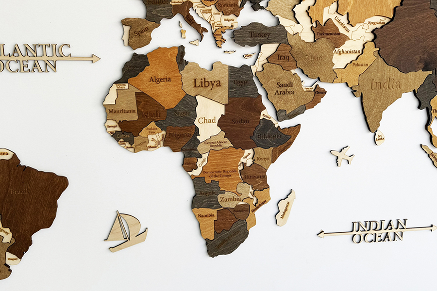Το πρώτο επίπεδο αποτελείται από 45 τεμάχια ενώ το δεύτερο επίπεδο από 86 επικολλημένες χώρες, σε πέντε διαφορετικούς χρωματισμούς, κάτι που κάνει τον χάρτη πραγματικά εντυπωσιακό.